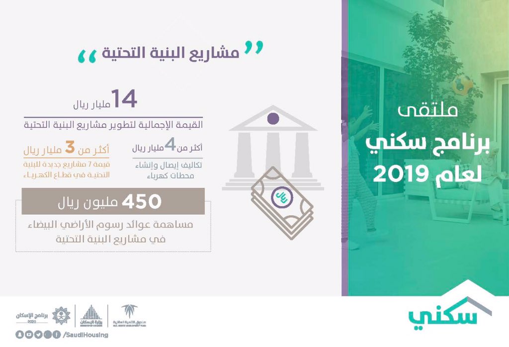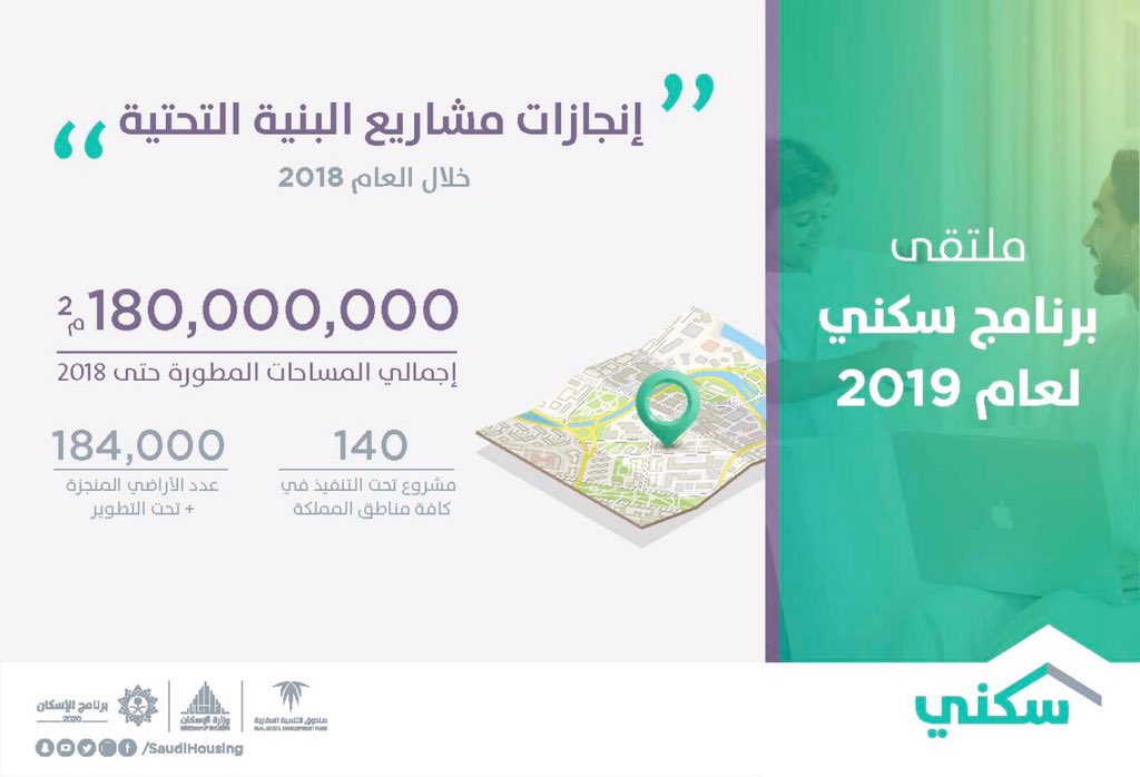 أعلنت وزارة الإسكان اليوم الثلاثاء، تخصيص 200,000 أسرة ضمن برنامج سكني لعام 2019، مضيفة “سنعمل بكامل جهودنا لتقديم المزيد لأهالينا المستفيدين”.