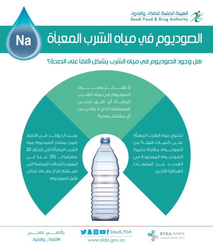كشفت الهيئة العامة للغذاء والدواء عما يمثله الصوديوم من خطورة على صحة الإنسان عند تناوله في المياه المعبأة.