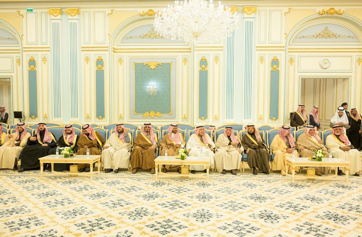 حضر الاستقبال صاحب السمو الملكي الأمير تركي الفيصل وصاحب السمو الملكي الأمير فيصل بن بندر بن عبدالعزيز أمير منطقة الرياض وصاحب السمو الملكي الأمير فهد بن سلطان بن عبدالعزيز أمير منطقة تبوك وصاحب السمو الأمير فيصل بن محمد بن عبدالعزيز وصاحب السمو الملكي الأمير محمد بن مشاري بن عبدالعزيز وصاحب السمو الملكي الأمير خالد بن بندر بن عبدالعزيز مستشار خادم الحرمين الشريفين وصاحب السمو الملكي الأمير الدكتور منصور بن متعب بن عبدالعزيز مستشار خادم الحرمين الشريفين وزير الدولة عضو مجلس الوزراء وصاحب السمو الملكي الأمير متعب بن عبدالله بن عبدالعزيز وصاحب السمو الملكي الأمير فيصل بن خالد بن عبدالعزيز مستشار خادم الحرمين الشريفين وصاحب السمو الأمير سعود بن عبدالله بن ثنيان وصاحب السمو الملكي الأمير محمد بن نواف بن عبدالعزيز مستشار خادم الحرمين الشريفين وصاحب السمو الأمير تركي بن فهد بن جلوي وصاحب السمو الأمير محمد بن نواف بن عبدالله وصاحب السمو الأمير فيصل بن سعود بن محمد وصاحب السمو الأمير الدكتور سعود بن سلمان بن محمد وصاحب السمو الأمير الدكتور تركي بن سعود بن محمد المستشار بالديوان الملكي وصاحب السمو الأمير خالد بن ثنيان بن محمد وصاحب السمو الأمير الدكتور بندر بن سلمان بن محمد وصاحب السمو الأمير فهد بن سعد بن تركي وصاحب السمو الأمير فهد بن سعد بن فيصل وصاحب السمو الأمير فهد بن تركي بن جلوي وصاحب السمو الأمير طلال بن بندر بن ثنيان وصاحب السمو الأمير بدر بن خالد بن مشاري وصاحب السمو الأمير عبدالعزيز بن سعد بن فيصل وصاحب السمو الملكي الأمير سعود بن فيصل بن مساعد بن سعود بن عبدالعزيز وصاحب السمو الملكي الأمير فواز بن بندر بن عبدالعزيز وصاحب السمو الملكي الأمير عبدالرحمن بن نايف بن فيصل بن سعود بن عبدالعزيز وصاحب السمو الأمير فهد بن بندر بن ثنيان.