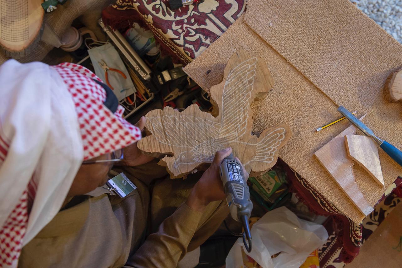يشهد “السوق الشعبي” في مهرجان الملك عبدالعزيز للصقور إقبالاً كبيرا من الزوار بمختلف شرائحهم لما يحتويه من معروضات شعبية وحرف يدوية تستذكر عراقة الماضي وبساطته وتوظيف الطبيعة لصنع مختلف الاحتياجات عبر أدوات بسيطة شكلت نواة الصناعات الحديثة.