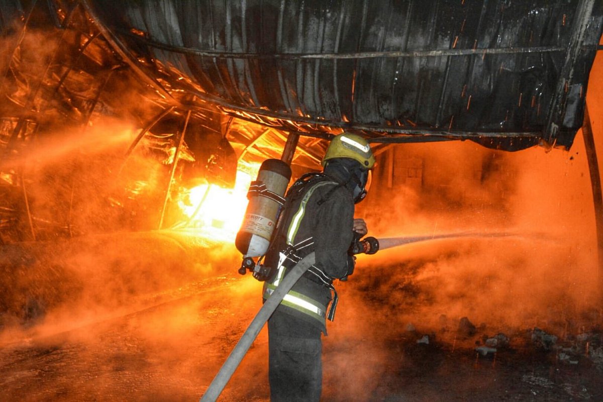 باشرت فرق الدفاع المدني بمحافظة جدة، صباح اليوم، حريقاً مروعاً اندلع في أربعة صهاريج تحتوي على مواد بترولية داخل حوش.