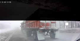 وخرجت الشاحنة عن السيطرة بسبب أحوال الطقس السيئة وانقلب نصفها الأمامي بعد انقسامها إلى نصفين، ولكن لم يذكر الموقع أي معلومات عن وقوع إصابات، وانتهى بانتشار الحطام في كل مكان خاصة على بعد سنتيمترات من السيارة ملتقطة الحادث.