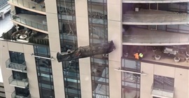 تعرض اثنان من عمال تنظيف زجاج ناطحات السحاب إلى موقف مرعب للغاية كادا يفقدان معه حياتهما.