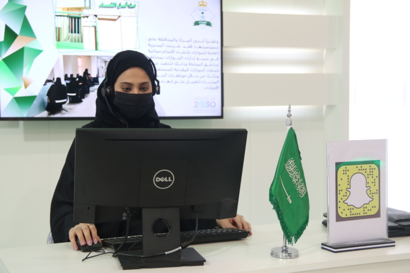 وشاهد الزوار خلال فترة المعرض عرضًا حيًا لبعض الاتصالات التي يتلقاها المركز، والذي تؤدي فيه المرأة دورًا مهمًا في الإجابة عن الاستفسارات الواردة للمركز.