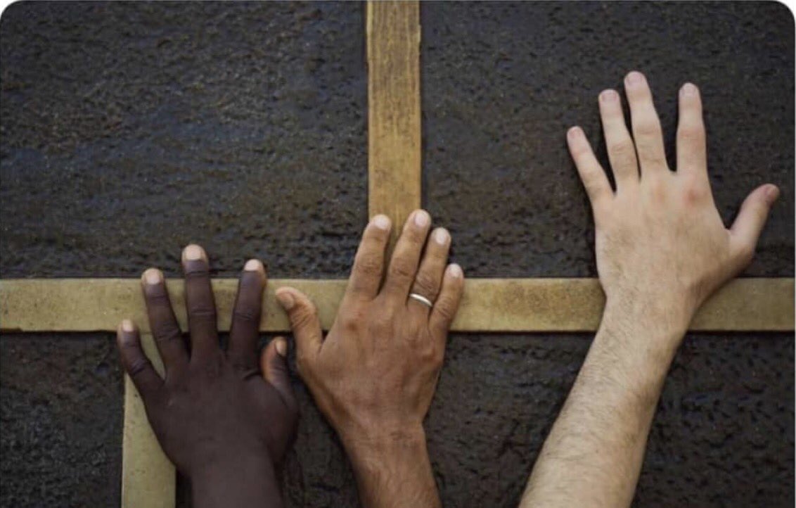 وكان الرد الأمثل على كل شخص عنصري هي صورة تحمل معنى واضحاً وصريحاً، حيث أظهرت أيادي لجنسيات مختلفة يقفون مبتهلين إلى الله بمختلف لغاتهم، ولكن جمعهم الدين وطريق الصلاح والدعاء عند الكعبة المشرفة والحجر الأسود.