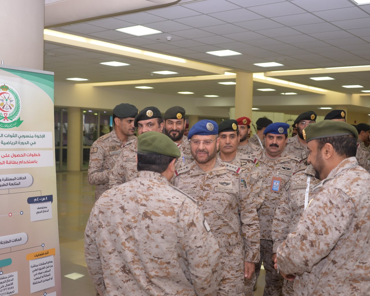 عقب ذلك ألقى مدير إدارة الشؤون الرياضية بالقوات المسلحة مدير الدورة العميد/ هادي بن بكر القحطاني كلمة قال فيها: لقد حبانا الله- عز وجل- في المملكة العربية السعودية بمقومات عديدة جعلتنا نملك مكانة رفيعة بين الدول القيادية في العالم، لم يكن ذلك ليتحقق لولا فضل الله ثم دعم وتوجيهات قائدنا خادم الحرمين شريفين الملك سلمان بن عبدالعزيز آل سعود وولي عهده الأمين نائب رئيس مجلس الوزراء وزير الدفاع صاحب السمو الملكي الأمير محمد بن سلمان رافع راية المملكة وصانع رؤية المجد والعز رؤية 20 30 الزاهرة بكل ما فيه رفعة وازدهار المملكة العربية السعودية وأبنائها في جميع المجالات والنواحي، رؤية تبدأ من أبناء الوطن وتنتهي إليه رؤية أهم أهدافها تأسيس قاعدة قوية لازدهار اقتصادي ليعيش أفراده وفق المبادئ الإسلامية ومنهج الاعتدال والوسطية ومعتزين بهويتهم الوطنية.
