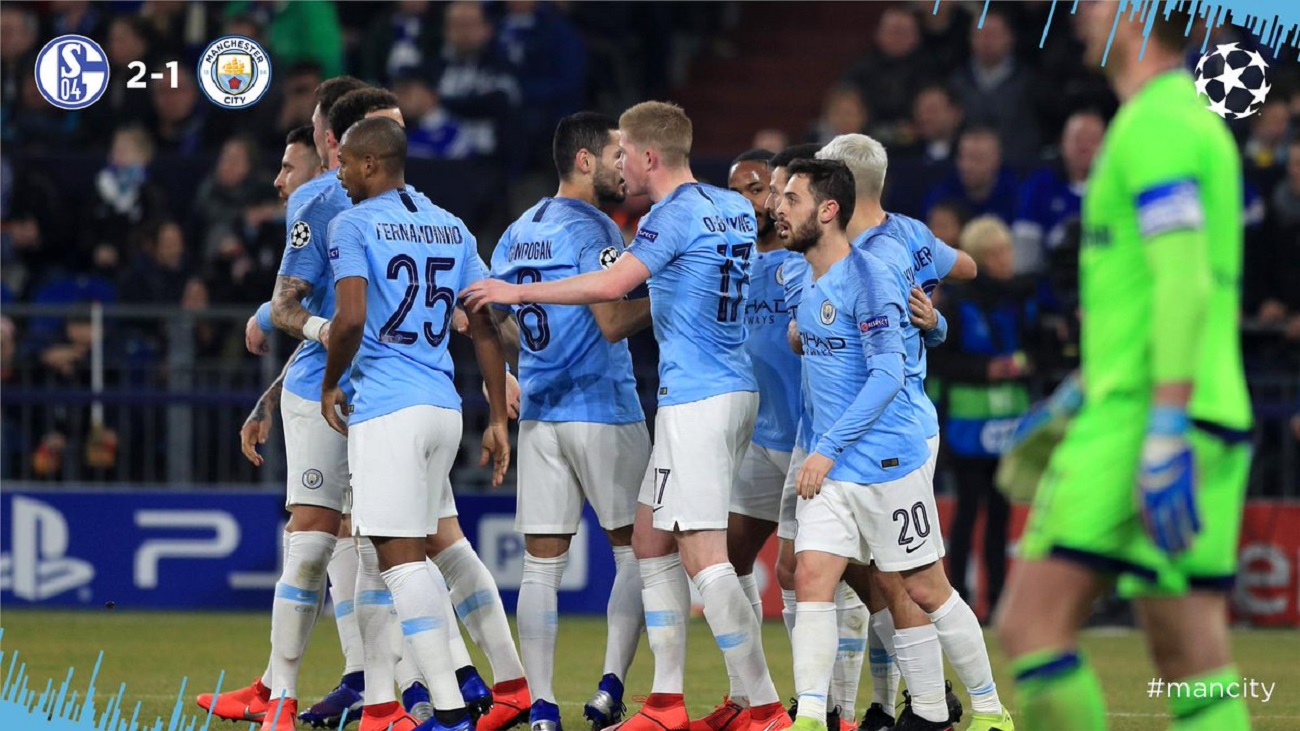 وبدأت مباراة شالكه ضد مان سيتي بسيطرة كاملة للاعبي السيتيزن، وكاد سيرجيو أجويرو أن يهز الشباك في الدقيقة السادسة، إلا أن الحارس تألق وأخّرها لركلة ركنية، وحاول كيفن دي بروين التسديد من مسافة بعيدة، ولكن لم تنجح محاولته.