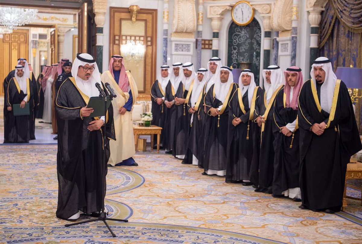 فقد أدى القسم كل من صاحب السمو الملكي الأمير منصور بن ناصر بن عبدالعزيز السفير المعين لدى جمهورية سويسرا، وصاحب السمو الأمير فيصل بن فرحان بن عبدالله السفير المعين لدى جمهورية ألمانيا الاتحادية، والسفير المعين لدى جمهورية السنغال فهد بن علي الدوسري، والسفير المعين لدى جمهورية فيتنام سعود بن فهد بن سويلم، والسفير المعين لدى جمهورية البرازيل الاتحادية علي بن عبدالله باهيثم، والسفير المعين لدى جمهورية ساحل العاج عبدالله بن حمد السبيعي، والسفير المعين لدى جمهورية غانا مشعل بن حمدان الروقي، والسفير المعين لدى جمهورية أثيوبيا الفيدرالية الديمقراطية سامي بن جميل عبدالسلام عبدالله، والسفير المعين لدى جمهورية مالي خالد بن مبروك الخالد، والسفير المعين لدى جمهورية جيبوتي عبدالعزيز بن عبدالله المطر، والسفير المعين لدى جمهورية زامبيا أسامة بن محمد كرنشي، والسفير المعين لدى اليابان نايف بن مرزوق الفهادي، والسفير المعين لدى دولة الإمارات العربية المتحدة تركي بن عبدالله الدخيل، قائلين (أُقسم بالله العظيم أن أكون مخلصاً لديني، ثم لمليكي وبلادي ، وأن لا أبوحَ بسر من أسرار الدولة ، وأن أحافظ على مصالحها وأنظمتها في الداخل والخارج، وأن أُؤدّيَ أعمالي بالصدق والأمانة والإخلاص).