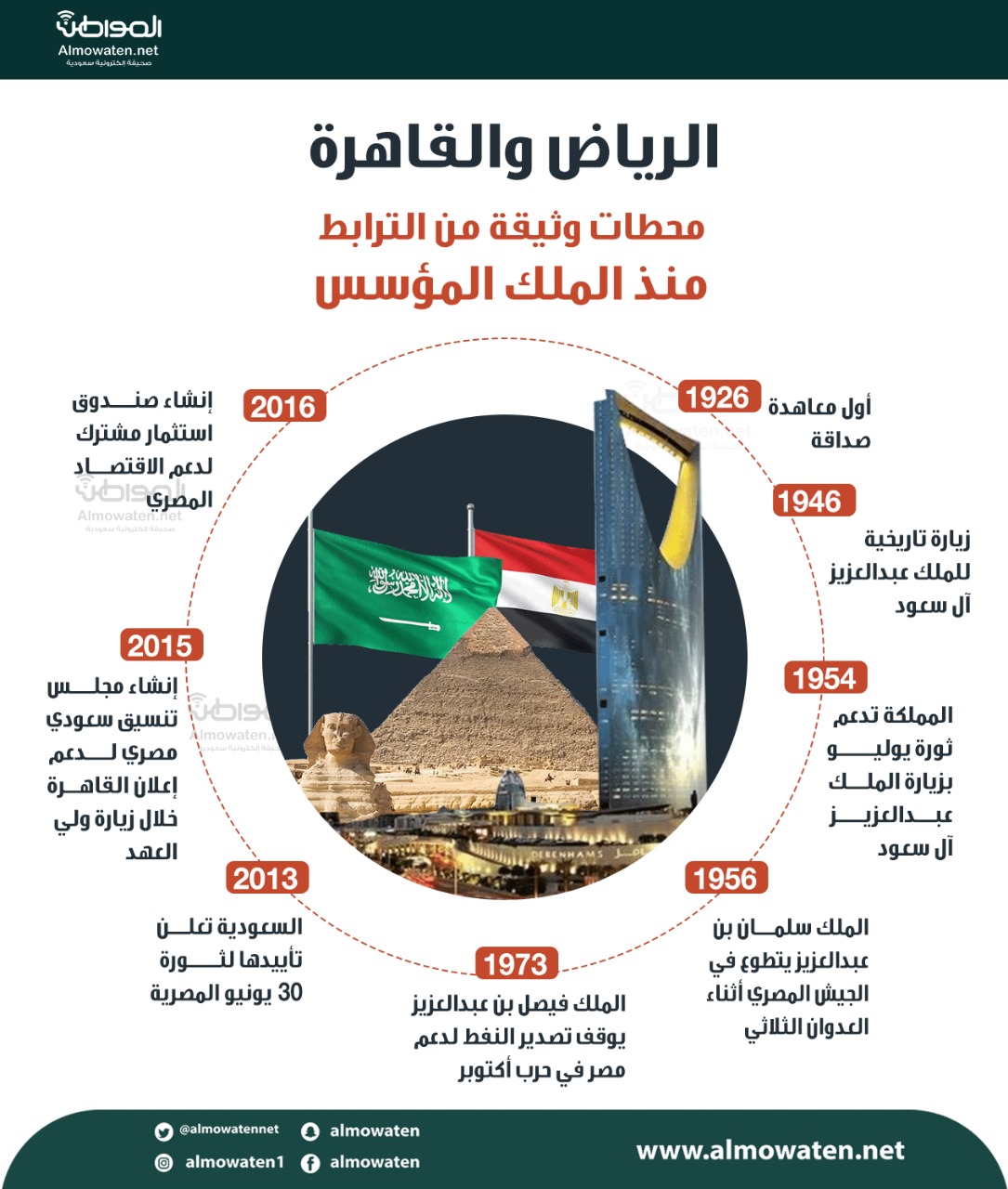 وبالأمس زار خادم الحرمين الشريفين الملك سلمان بن عبدالعزيز مصر لحضور فعاليات القمة العربية الأوروبية، والتقي خلال زيارته الكريمة بالرئيس المصري عبدالفتاح السيسي، حيث تأتي هذه الزيارة امتداداً للعلاقات والروابط الوثيقة بين البلدين، منذ عهد الملك المؤسس رحمه الله.