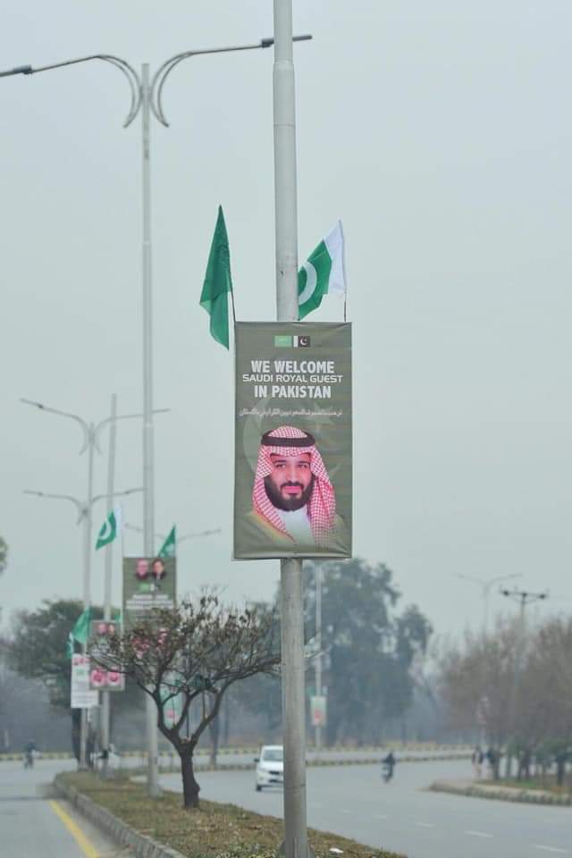 وتزينت الميادين والشوارع الحيوية في باكستان والعاصمة إسلام آباد، منذ وقت مبكر، بالأعلام وصور القيادة ترحيباً بهذه الزيارة التاريخية لولي العهد الأمير محمد بن سلمان.