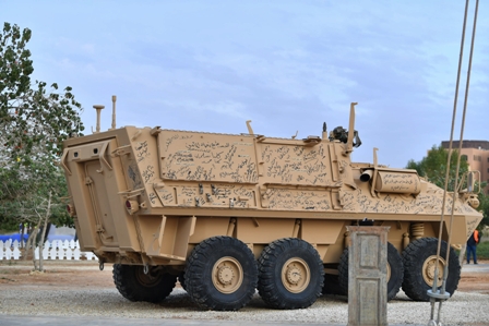 عبّر مواطنون ومقيمون بمشاعر جيّاشة نثروها على متن “مدرعة” عسكرية تعود لوزارة الحرس الوطني في أثناء المشاركة بالمهرجان السعودي للجواد العربي “عبيّة” ، حيث تستعد الآلية للمغادرة إلى الحد الجنوبي مُحمّلة بدعوات النصر.