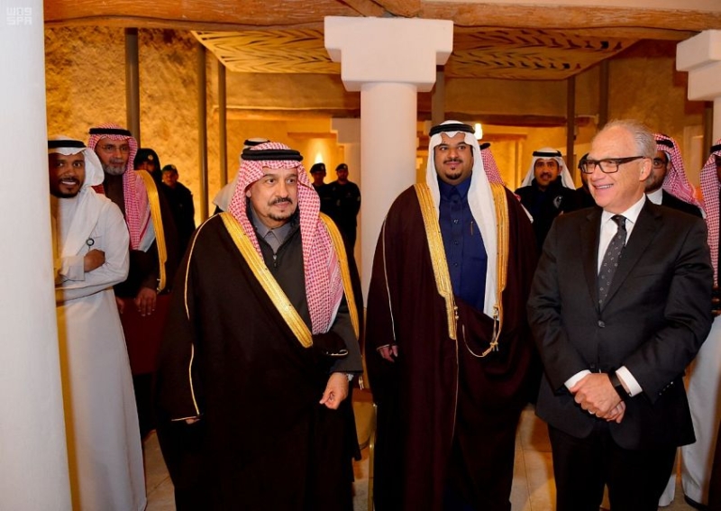 وكان في استقباله لدى وصوله صاحب السمو الملكي الأمير فيصل بن بندر بن عبدالعزيز أمير منطقة الرياض وصاحب السمو الأمير أحمد بن عبدالله بن عبدالرحمن محافظ الدرعية وصاحب السمو الملكي الأمير محمد بن عبدالرحمن بن عبدالعزيز نائب أمير منطقة الرياض ، ومعالي المستشار الخاص والمشرف العام على مكتب سمو أمير منطقة الرياض الأستاذ سحمي بن شويمي بن فويز ومعالي أمين منطقة الرياض المهندس طارق بن عبدالعزيز الفارس.