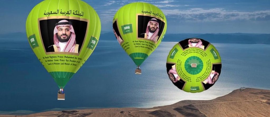 دشن منطاد الإمارات في العاصمة البريطانية لندن تصميم منطاد صاحب السمو الملكي الأمير محمد بن سلمان بن عبد العزيز ولي العهد نائب رئيس مجلس الوزراء وزير الدفاع – حفظه الله – للإعلان عن بدء انطلاق جولته العالمية في يونيو القادم من العاصمة الرياض ثم تبوك وصولاً إلى دول العالم.