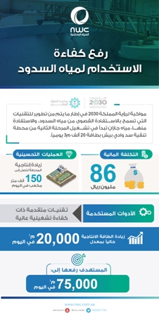 وقال: “عند اكتمال جميع مشاريع توسعة محطة تنقية مياه سد وادي بيش التي تبلغ تكلفتها 86 مليون ريال، سوف ترتفع إنتاجية المحطة لتصل إلى 150 ألف متر مكعب في اليوم”، لافتاً إلى أن هذا الإنجاز سيرفع الكفاءة التشغيلية لإمدادات المياه، مشيراً وفق أهداف رؤية المملكة 2030 في إطار ما يتم من تطوير للتقنيات التي تسمح بالاستفادة القصوى من المياه المحتجزة خلف السدود للحد من هدر مياه الأمطار بالاستفادة المباشرة منها.
