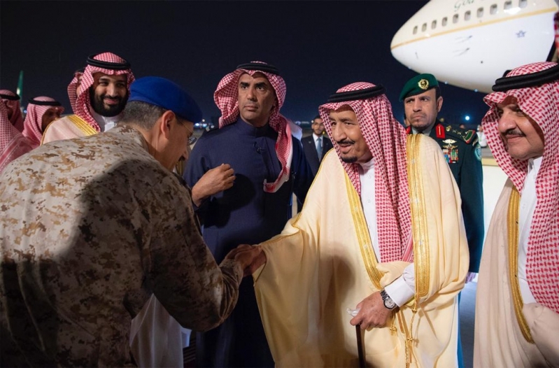 وكان في استقبال خادم الحرمين الشريفين عند سلم الطائرة بمطار قاعدة الملك عبدالعزيز الجوية في الظهران، صاحب السمو الملكي الأمير سعود بن نايف بن عبدالعزيز أمير المنطقة الشرقية، وصاحب السمو الملكي الأمير محمد بن سلمان بن عبدالعزيز ولي العهد نائب رئيس مجلس الوزراء وزير الدفاع.