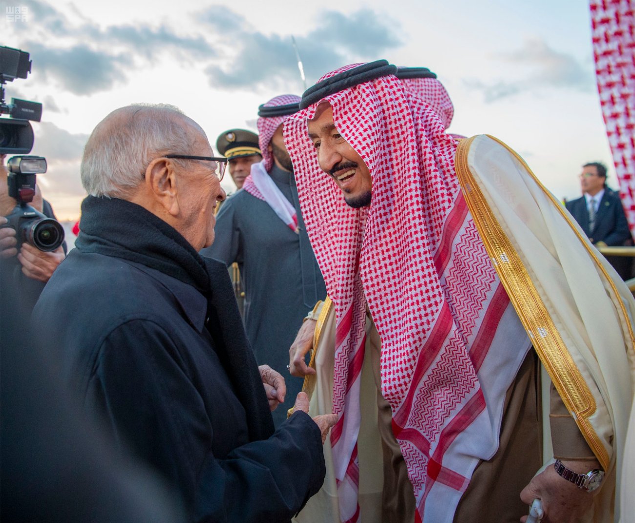 وجمعية الصحفيين الرياضيين التونسيين تعبر عن اعتزازها بهذه الزيارة الميمونة التي يؤديها خادم الحرمين الشريفين الملك سلمان بن عبد العزيز متمنية له طيب الإقامة وراجية من الله أن تكون هذه الزيارة علامة مضيئة في العلاقات التونسية السعودية ولبنة أخرى لتعزيز تلك العلاقات التاريخية.