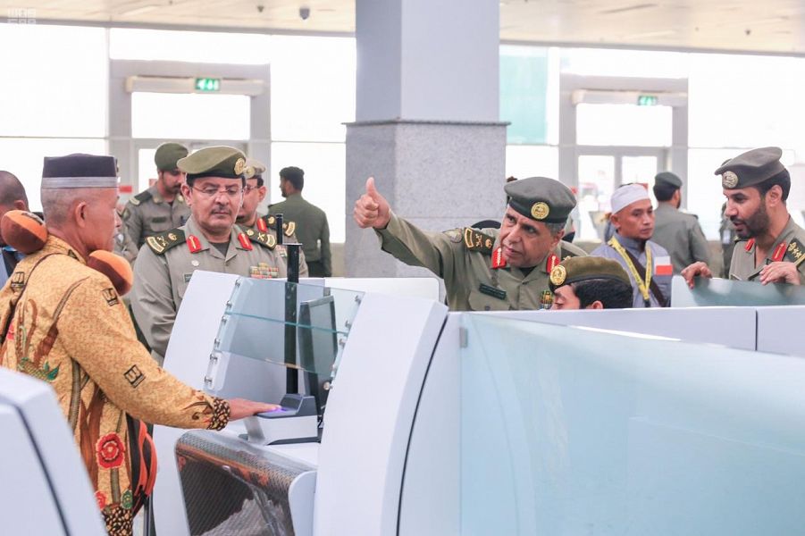 وأوضح مدير عام الجوازات أنه تم دعم جوازات مطار الملك عبدالعزيز الدولي بجدة بالكوادر البشرية المدربة والمؤهلة من ضباط وصف ضباط وموظفين وموظفات، وبالأجهزة التقنية المتطورة لتسهيل إجراءات قدوم حجاج بيت الله الحرام.