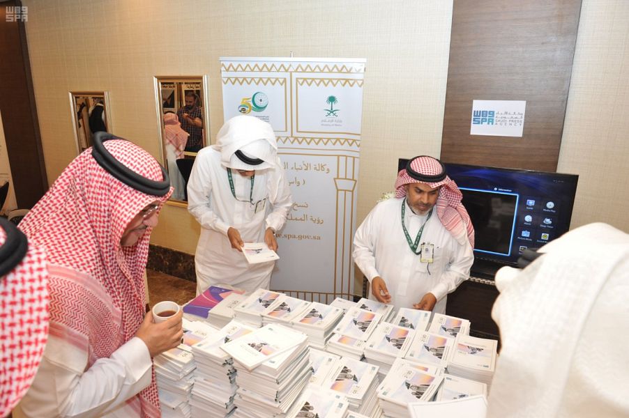 كما عرضت ” واس” في ركنها نسخًا من رؤية المملكة ٢٠٣٠ التي طبعتها باللغات : العربية، والإنجليزية، والروسية، والصينية، والماليزية، وقدمتها هدية لضيوف القمم والإعلاميين ليطلعوا على تفاصيل الرؤية وأبعادها الإستراتيجية.