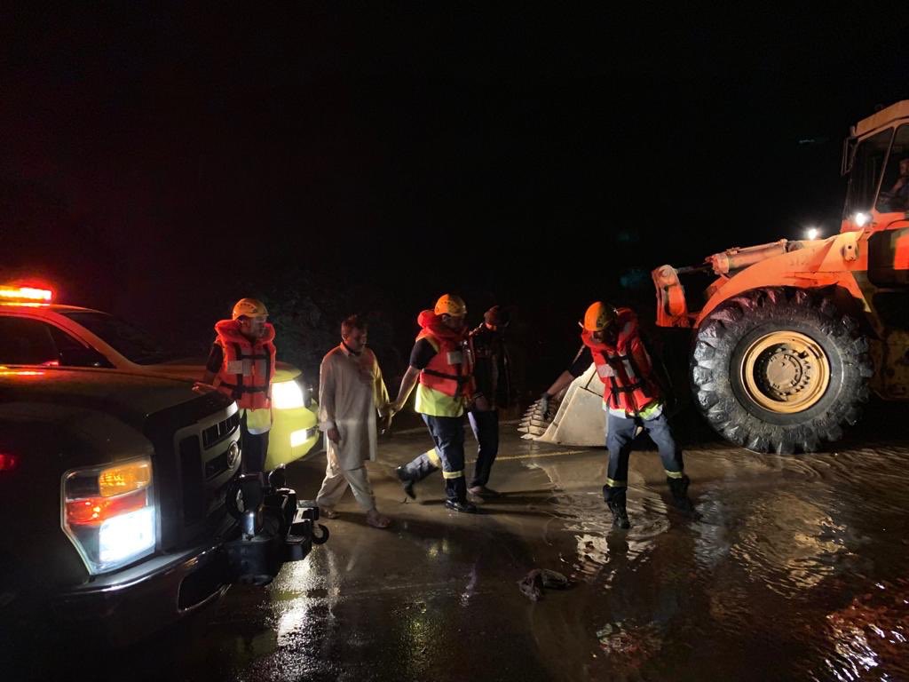 إنقاذ أسرة من خمسة أشخاص احتجزتهم مياه الأمطار في الباحة
