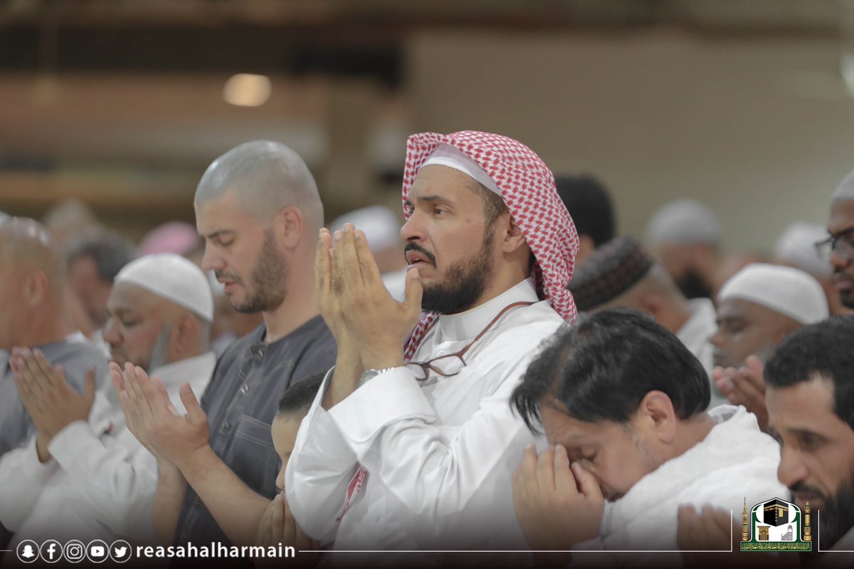 يؤم المصلين في صلاة التراويح الليلة من المسجد الحرام كل من الشيخ الدكتور ياسر الدوسري والشيخ الدكتور بندر بليلة.