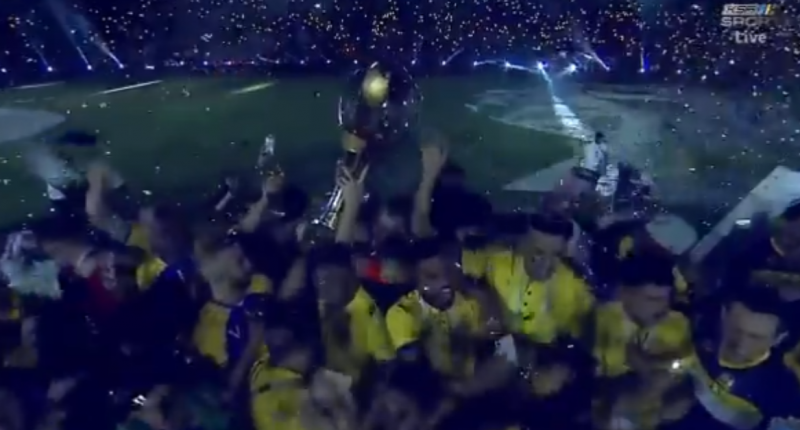 🎥 — لحظة تكريم رئيس نادي #النصر سعود آل سويلم بعد الفوز بلقب الدوري#النصر_بطل_دوري_محمد_بن_سلمان pic.twitter.com/8NELDyOA5w