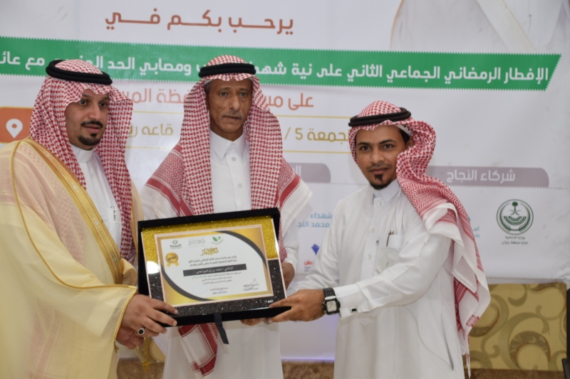 وفي نهاية الحفل تم تكريم أبناء الشهداء والمصابين والداعمين لهذا الحفل، كما تم تكريم “المواطن” لجهودها الفعالة في هذا الحفل والإفطار الجماعي ومشاركتها المستمرة في التغطيات بالحد الجنوبي في جازان.