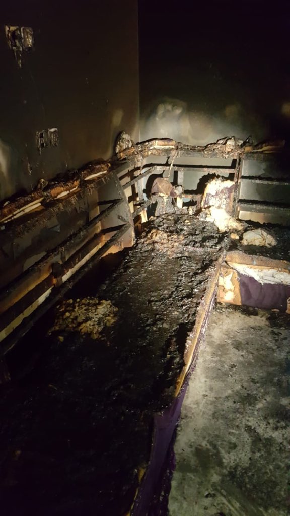 ونشر المدني صورة تبين حريق صالة المنزل، حيث بينت إتيان الحريق على محتويات المكان بشكل تام.