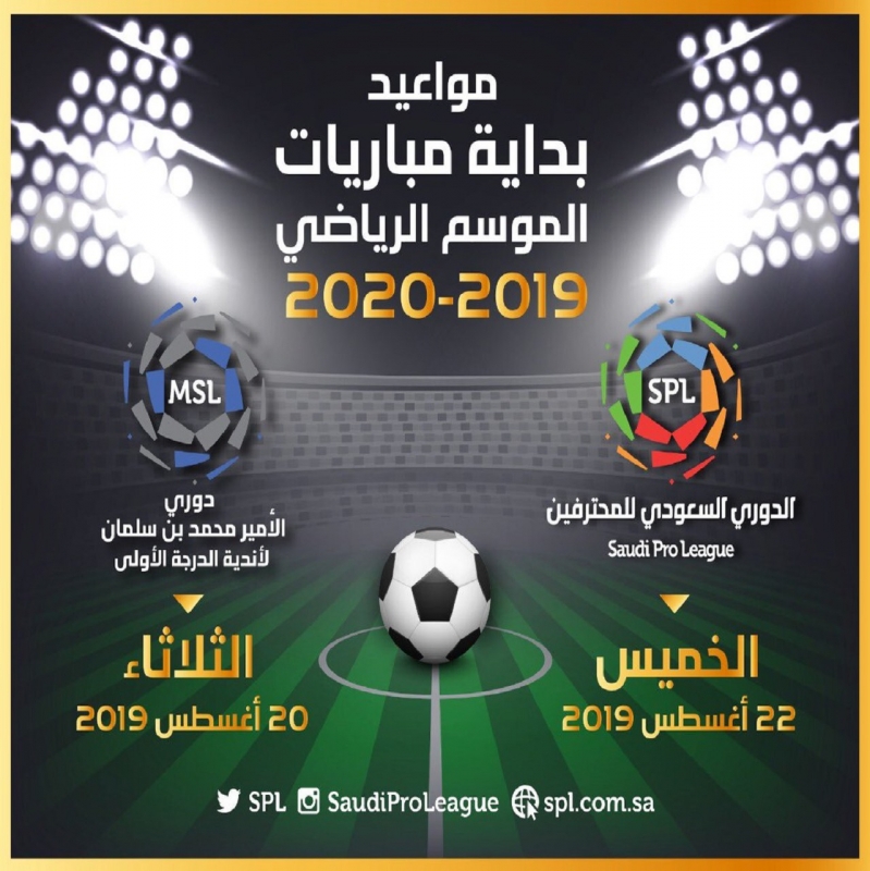 أعلنت رابطة الدوري السعودي للمحترفين، مساء اليوم الثلاثاء، عن انطلاق موسم 2019/ 2020 من البطولة، يوم 22 من شهر أغسطس المقبل.
