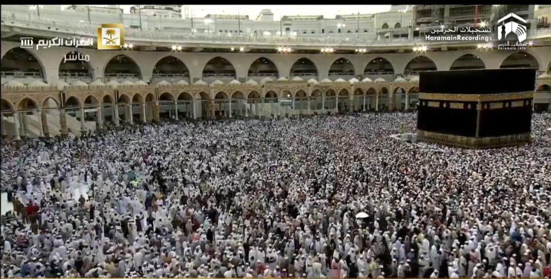 امتلأ صحن المطاف في الكعبة المشرفة بضيوف الرحمن الذين يُؤدون طواف الوداع قبل مغادرة مكة المكرمة بعد أن منّ الله عليهم بأداء فريضة الحج.
