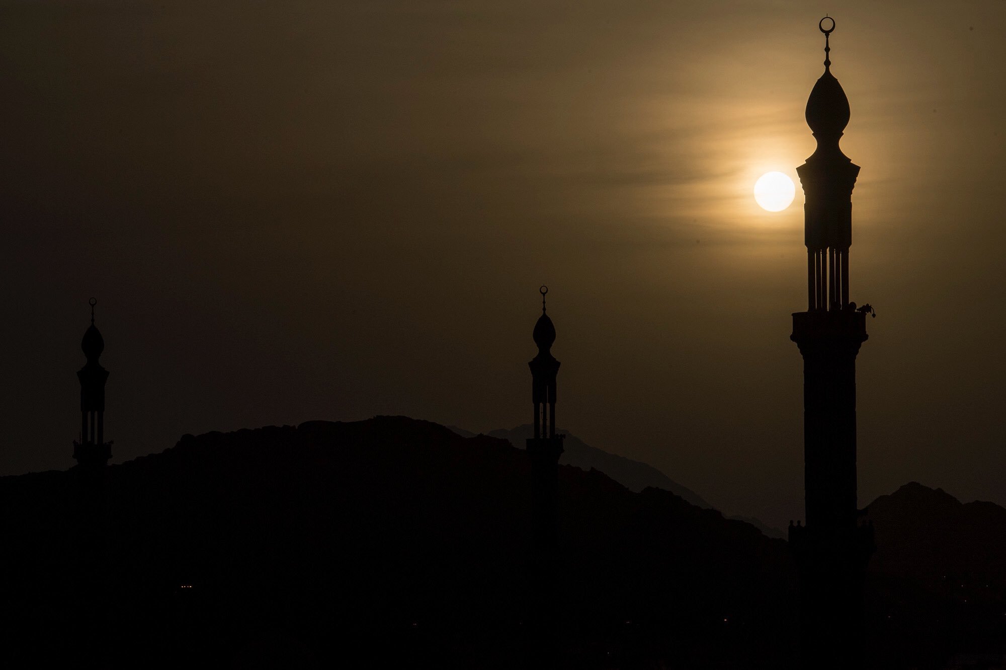 بينت لقطات مسجد نمرة لحظة غروب شمس، اليوم الجمعة الثامن من شهر ذي الحجة، وقبل ساعات على يوم عرفة.
