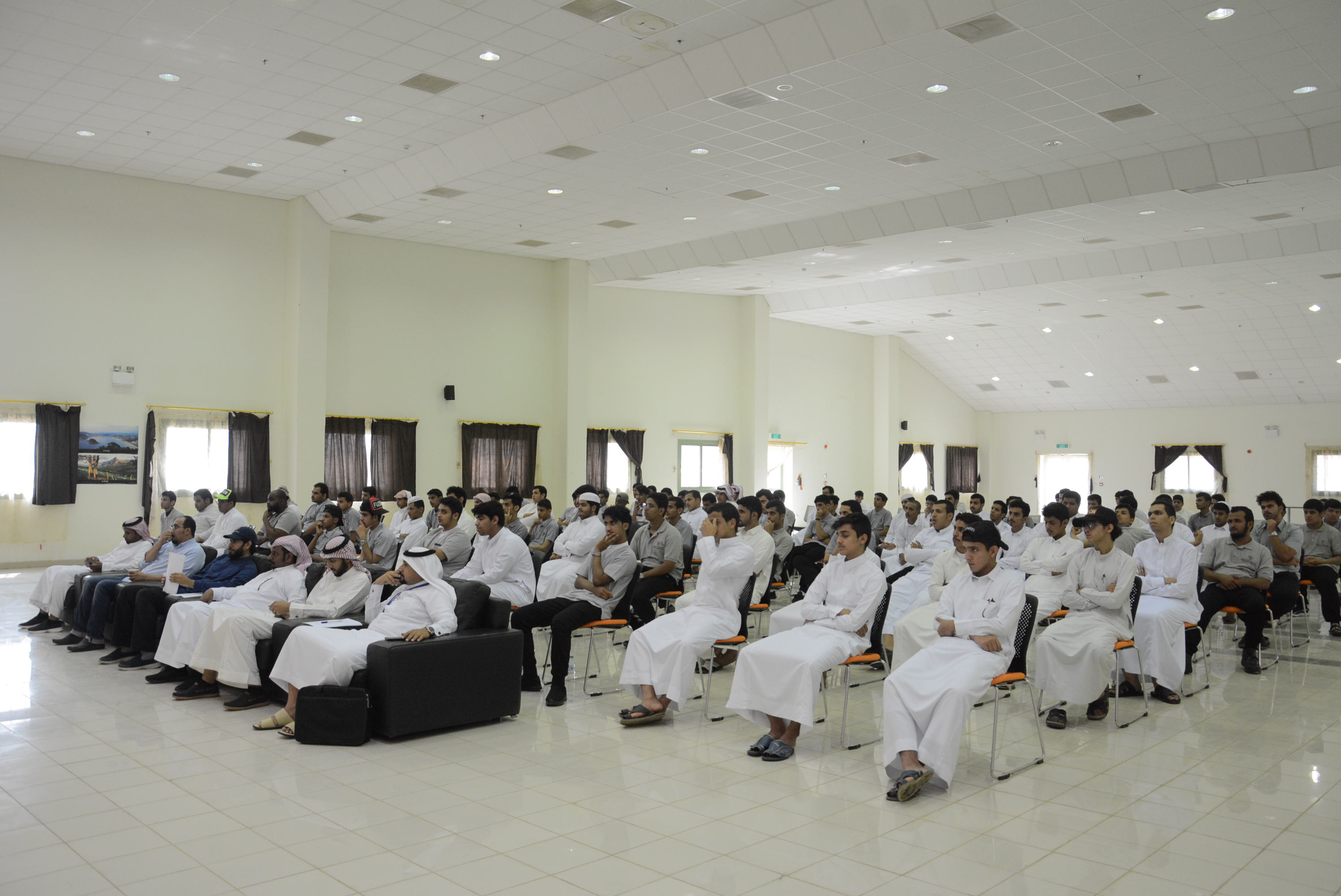 بعد ذلك قام وكيل المتدربين ” الغامدي ” بشرح الأنظمة والتعليمات التي يجب اتباعها خلال فترة التدريب في الكلية وما يمكن تقديمه من برامج وحوافز للمتميزين منهم.