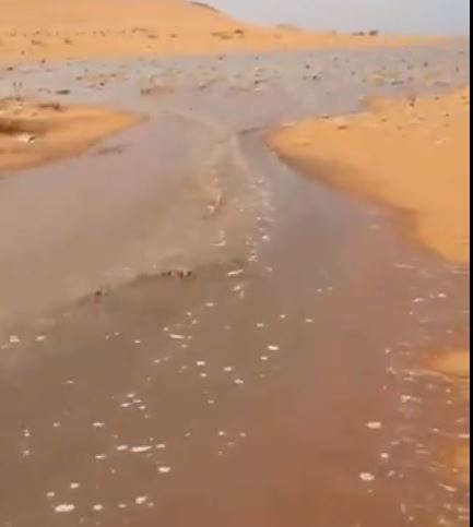 ووثق المواطن نواف آل سليم، جريان السيول ما بين أم الوهط والمنخلي شرق نجران.