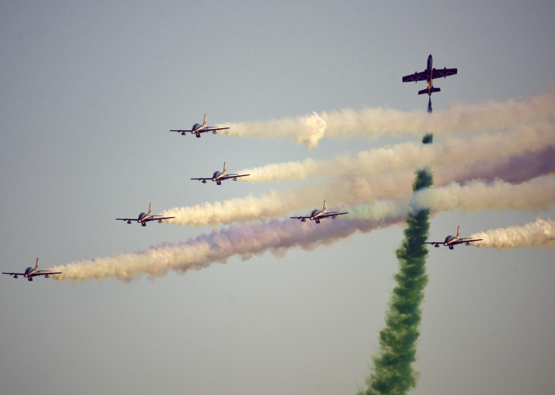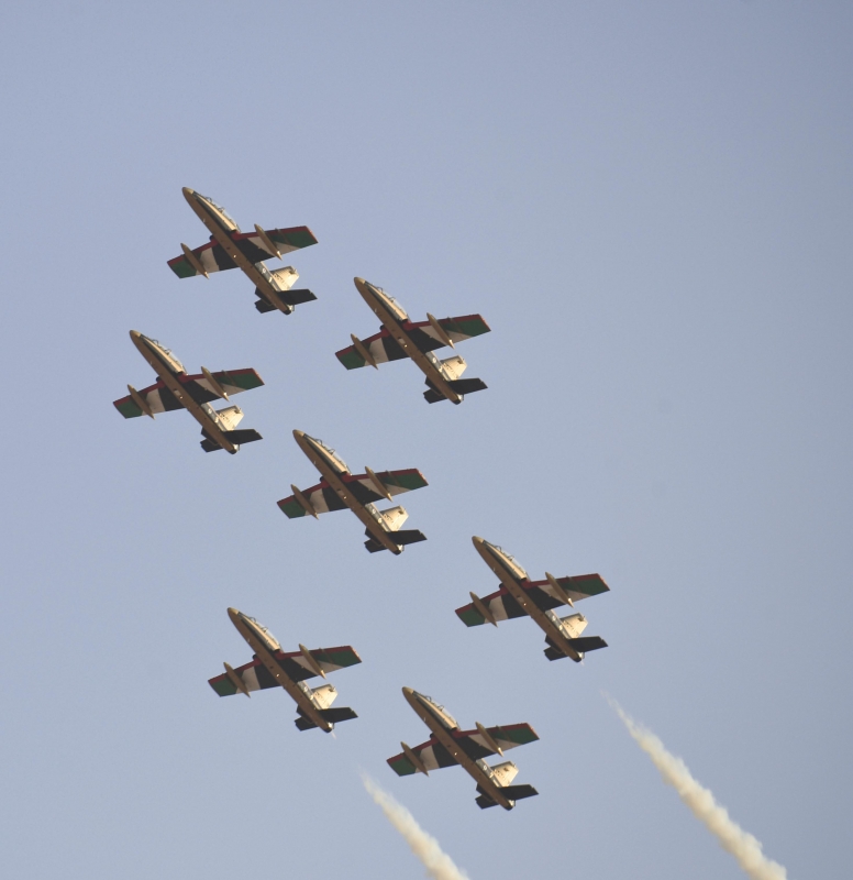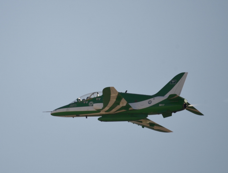 وقدمت التشكيلات طائرات القوات الجوية الملكية السعودية، وبمشاركة فريق الصقور السعودية ضمن احتفالات اليوم الوطني للمملكة التاسع والثمانين.