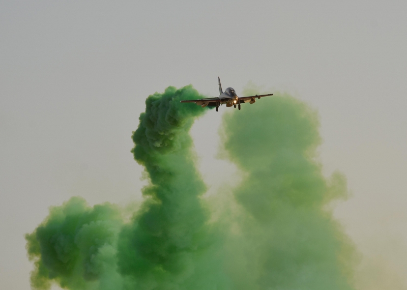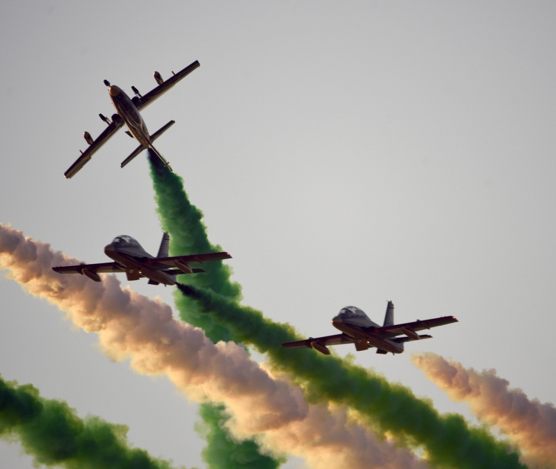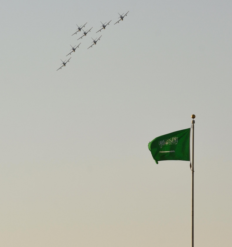 واستعرضت مجموعة من الطائرات المقاتلة المتوشحة باللون الأخضر وبالعلم السعودي في سماء الرياض، مقدمةً استعراضات مختلفة أثارت الإعجاب والحماسة، وسط حضور كثيف من الأهالي والزوار الذين تفاعلوا مع العروض.