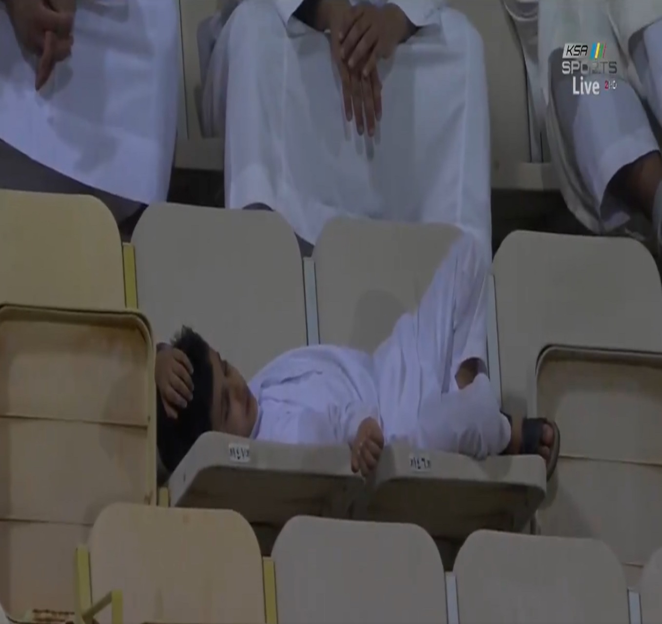 ونشر حساب قناة KSA SPORTS الرسمي على موقع التدوينات القصيرة “تويتر”، مقطع فيديو لطفل صغير وهو نائم في مدرجات مباراة الفيصلي والفتح.