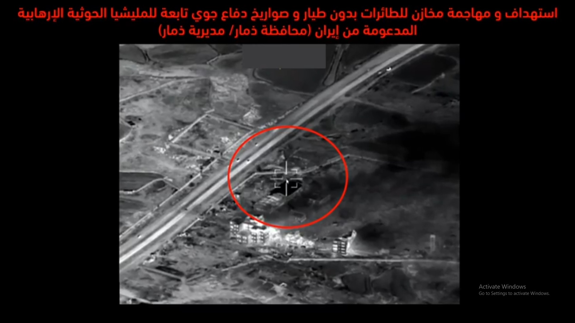 وبين الفيديو مهاجمة التحالف لمخازن طائرات بدون طيار وصواريخ دفاع جوي تابعة لميليشيا الحوثي المدعومة من إيران في مديرية ذمار.