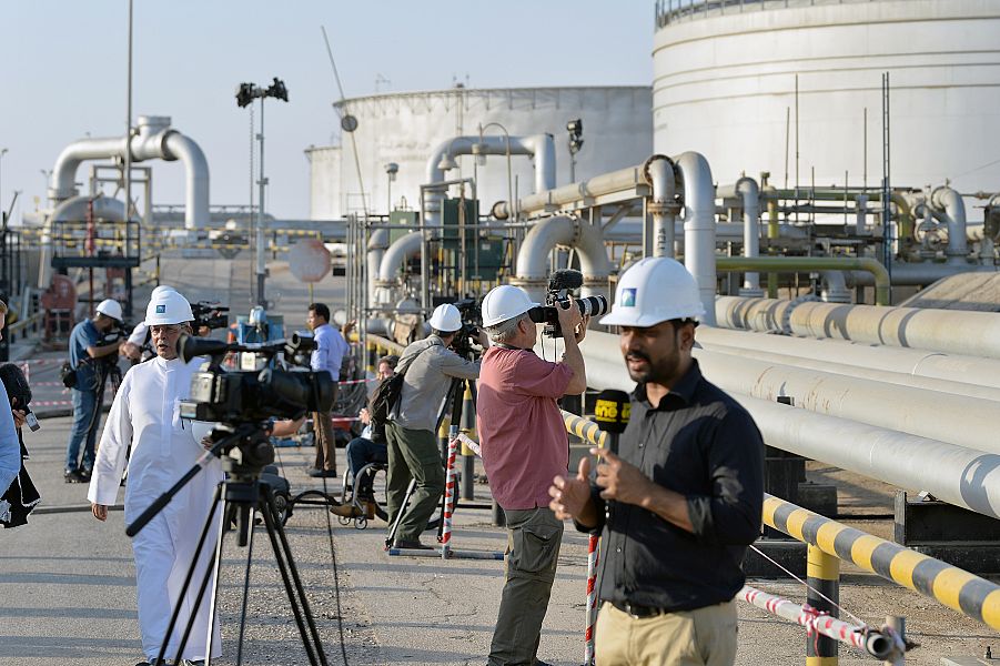 إشارة إلى بشرى خادم الحرمين الشريفين الملك سلمان بن عبدالعزيز آل سعود، وسمو ولي عهده الأمين ـ حفظهما الله ـ ونقلها صاحب السمو الملكي الأمير عبدالعزيز بن سلمان بن عبدالعزيز وزير الطاقة خلال المؤتمر الصحفي الذي عقد في جدة الثلاثاء الماضي بشأن عودة الإمدادات البترولية لما كانت عليه، اطلع وفد إعلامي يضم أكثر من 25 وسيلة إعلامية من جميع أنحاء العالم بعدد 80 إعلامياً ما بين مصور ومحرر ومساعد، شملت القنوات، والوكالات، والصحف العالمية، اليوم على معامل الزيت في وبقيق وخريص التي تأثرت بالهجوم التخريبي الذي استهدف مرافق الإنتاج.