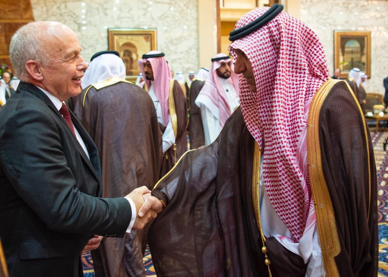 وفي صالون الاستقبال، صافح الرئيس السويسري أصحاب السمو الأمراء، والمعالي الوزراء، وقادة القطاعات العسكرية.