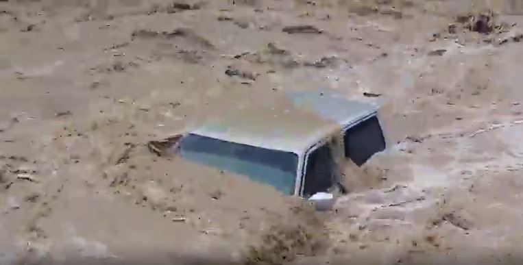 وأظهر مقطع فيديو متداول السيول وهي تجرف إحدى المركبات بقوة شديدة.