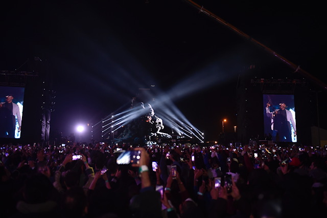 ودخل رمضان إلى المسرح، على طريقة عصابات المافيا، وذلك بواسطة سيارة هبط منها، وأخذ يطلق بالسلاح الرشاش على المافيا فوق المسرح، الأمر الذي لاقى احتفاء من الجمهور، وقدم الفنان محمد رمضان باقة من أغانيه تفاعل معها الجمهور.