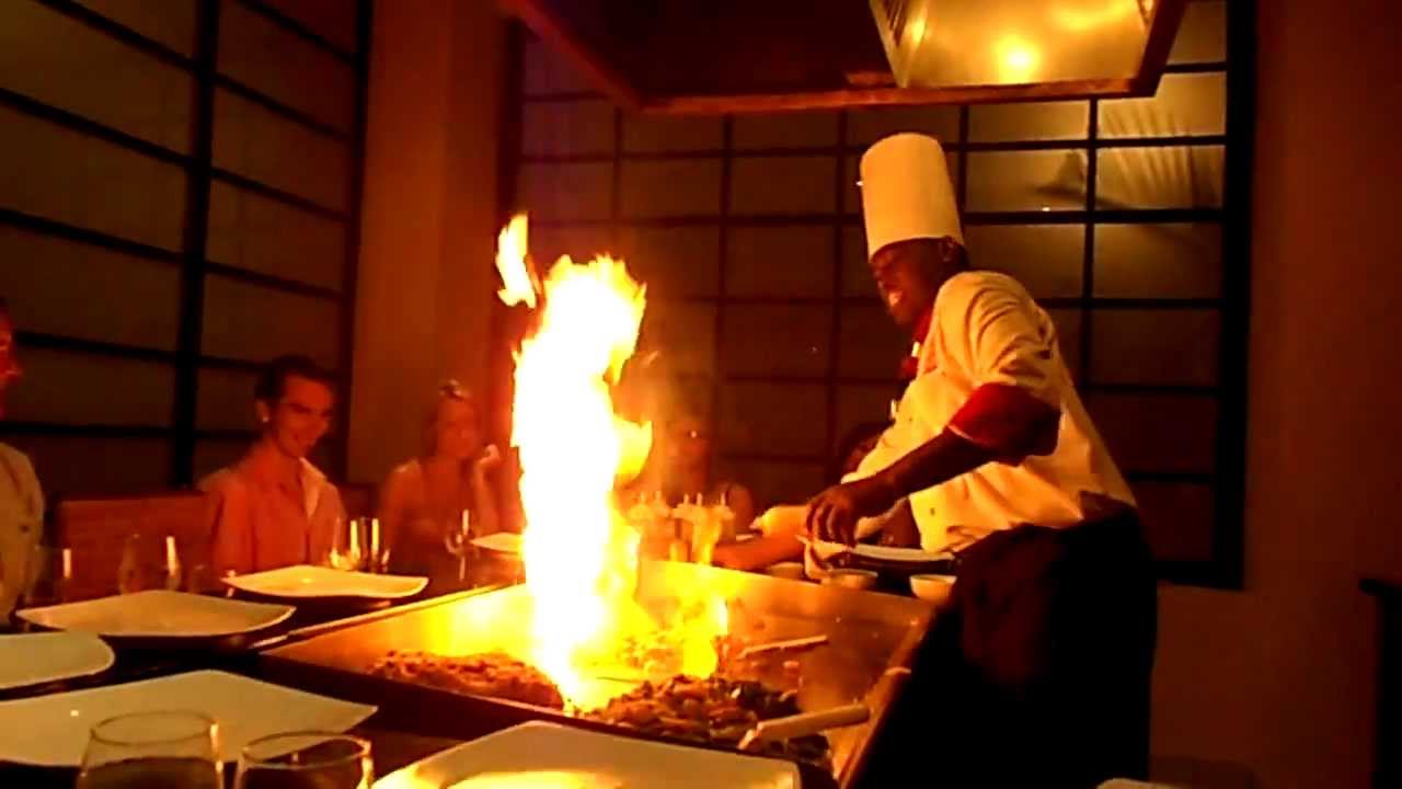أصيب طفل في الخامسة من العمر، بحروق خطيرة في وجهه وجسمه، بعد أن رش طاه كاليماري تيبانياكي بالزيت، على طبق ساخن في مطعم ياباني.