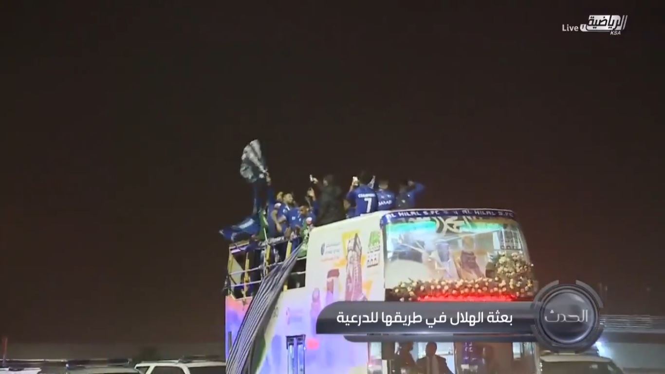 ونشرت القناة الرياضية السعودية عبر حسابها الرسمي على موقع التدوينات القصيرة “تويتر”، مقطع فيديو لبعثة الهلال وهي تستقل حافلة مكشوفة، وفي الطريق إلى الدرعية، وسط استقبال جماهيري كبير.