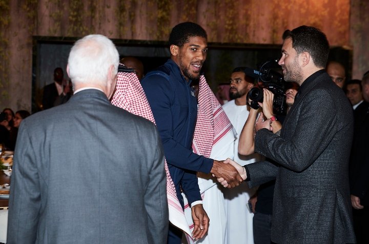 وانضم الملاكم البريطاني، أنتوني جوشوا، إلى نظيره المكسيكي- الأمريكي أندي رويز، إلى حفل عشاء أُقيم مساء أمس، بحضور إدي هيرن، المدير الإداري للمجموعة في Matchroom Sport.