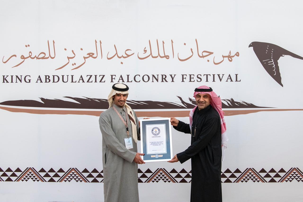 وتسلم شهادة الإنجاز، اليوم الاثنين، نادي الصقور السعودي، والتي منحت للمهرجان كونه أكبر بطولة من نوعها في العالم، بعدد صقور مشاركة بلغ 2350 صقرًا.