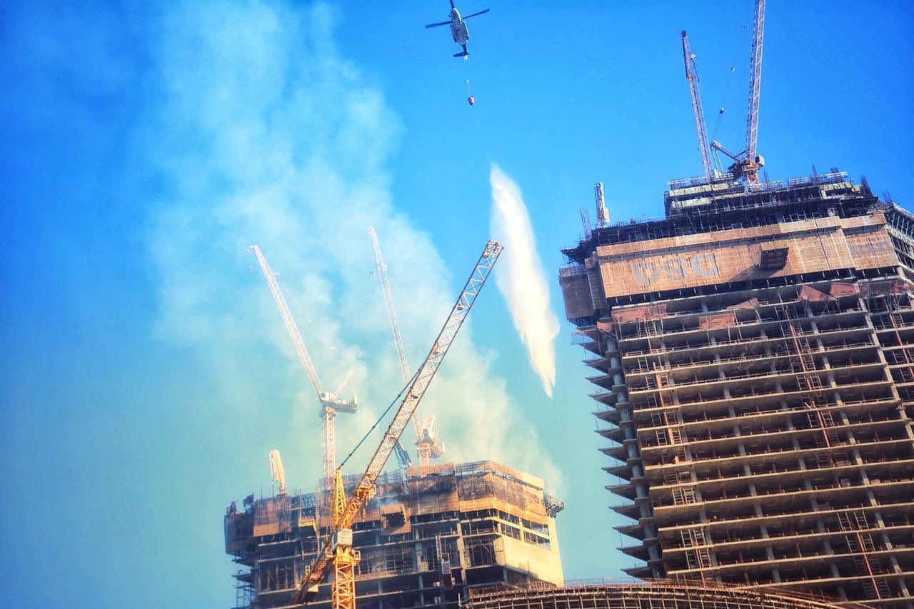 ونشر الدفاع المدني صور حريق برج جدة وعلق عليه بالقول : يباشر الآن مدني جدة حادث حريق اندلع في برج تحت الإنشاء بكورنيش جدة والفرق تكافح الحريق.