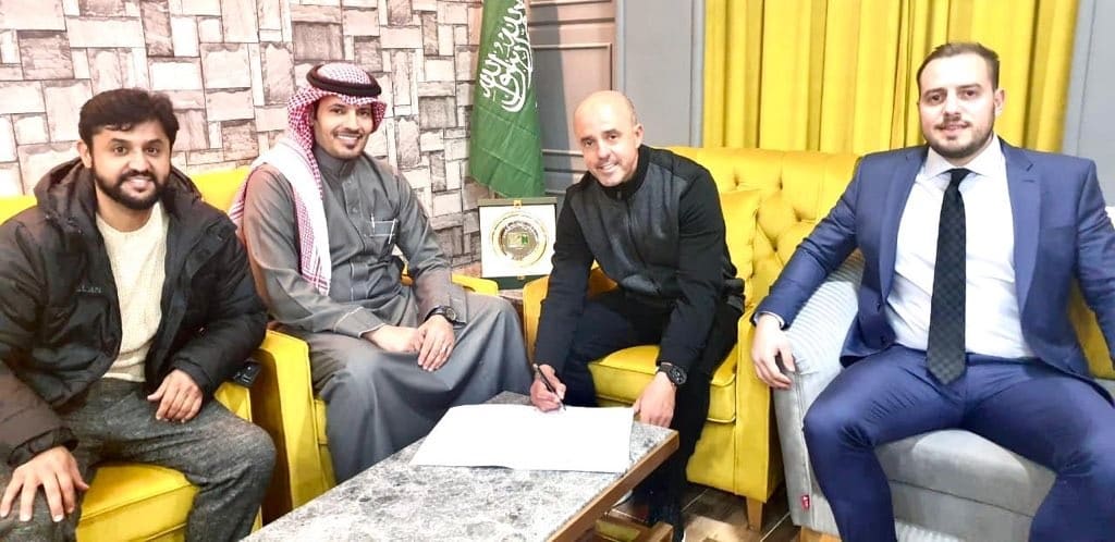ونشر حساب نادي الحزم صورة للمدرب آندري لويز أثناء توقيع العقود رسميًّا بحضور رئيس مجلس الإدارة عبدالله المقحم، والرئيس التنفيذي فهد العايد.