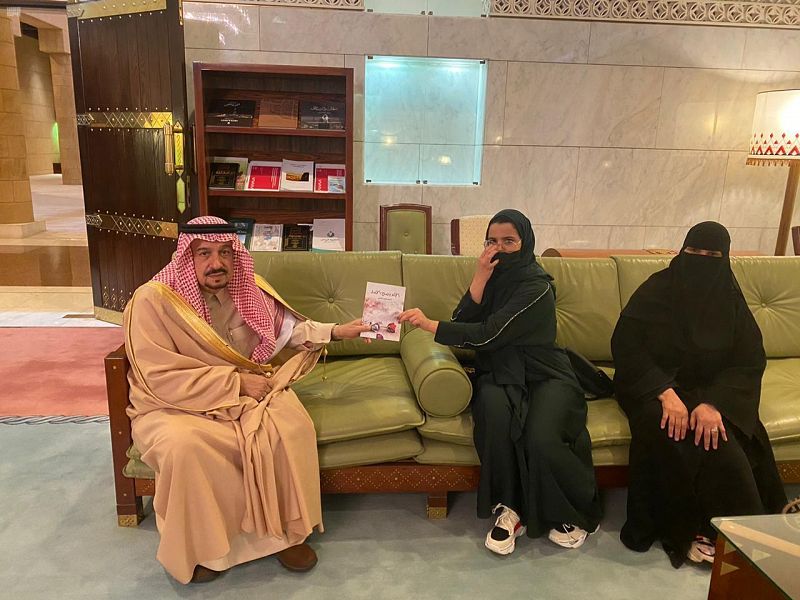 استقبل صاحب السمو الملكي الأمير فيصل بن بندر بن عبدالعزيز أمير منطقة الرياض في مكتب سموه بقصر الحكم اليوم , أسماء بنت هليل العنزي التي قدمت لسموه إهداء عبارة عن كتاب بعنوان ” الألم يصنع الأمل” يحكي تجربتها مع مرض السرطان ومشاركاتها التطوعية والمجتمعية التوعوية بمرض السرطان وتأثيراته النفسية وكيفية مواجهتها.