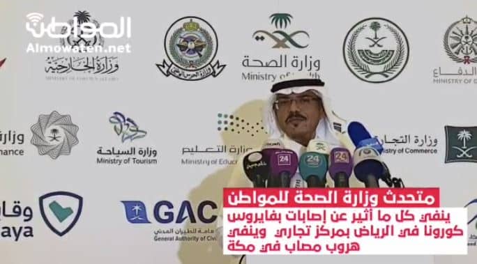 وكان المتحدث الرسمي نفى عبر تويتر اليوم ما يتم تداوله حول تسجيل حالات إصابة بفيروس كورونا الجديد في أحد الأسواق التجارية بمدينة الرياض، وتسجيل حالات إصابة بمحافظة القنفذة.