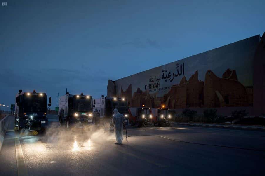 ومن الجهود الوقائية والتوعوية التي بذلتها هيئة تطوير بوابة الدرعية فقد قامت باستخدام أحدث المعدات لتعقيم جميع المناطق وذلك بالقيام بعدد من الجولات اليومية لضمان صحة وسلامة المحافظة وقاطنيها ، وحرصت على استحداث نظام عمل جديد فيما يتعلق بالاهتمام بصحة العاملين؛ وذلك من خلال تقليل عدد العاملين الميدانيين في المجموعة الواحدة وزيادة عدد المجموعات ليتم توفير أقصى مراحل العناية على مدار اليوم مع التأكيد على صحة كل العاملين حيث يتم فحصهم بشكل دوري قبل بدء العمل وبعد الانتهاء منه وتعقيم المركبات والمعدات كافة، وتزويدهم بجميع المعلومات والاحترازات بكل اللغات المتاحة.