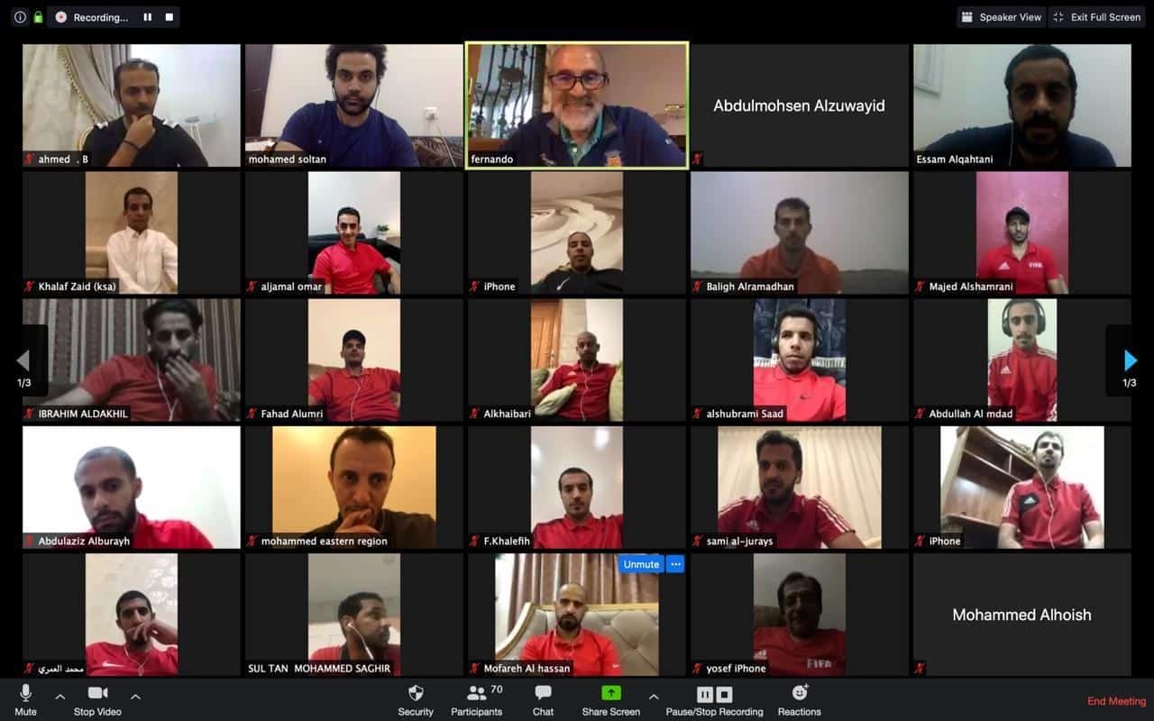 عقد رئيس لجنة الحكام الرئيسية بالاتحاد السعودي لكرة القدم، الإسباني فرناندو تريساكو، اليوم الثلاثاء، اجتماعًا عن بُعد مع 76 حكمًا.